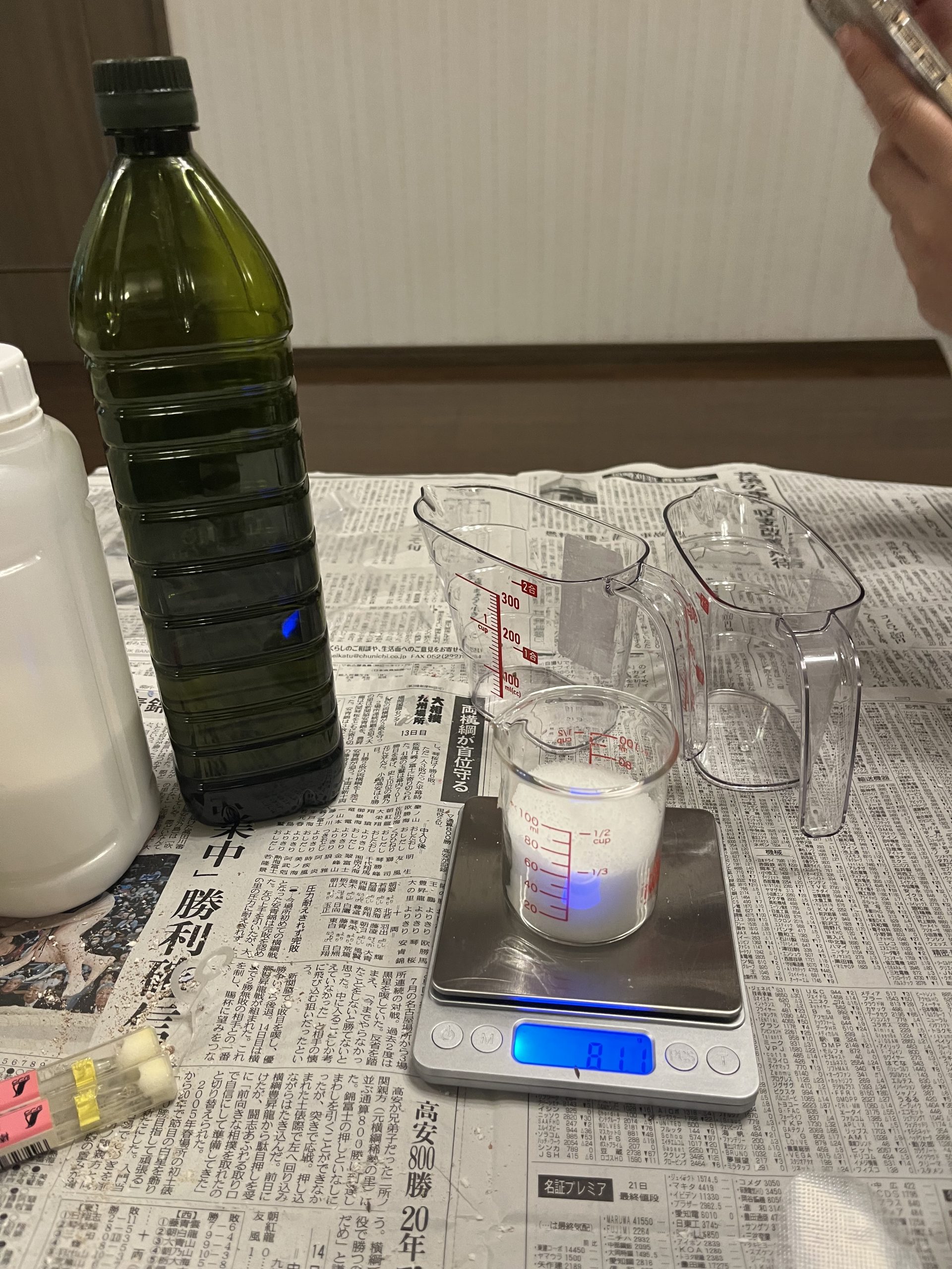 今回のオイルは3種類のオイルを使いました。前回はよかれと思い 100%オリーブオイルを使ったのですが いまいち🧐