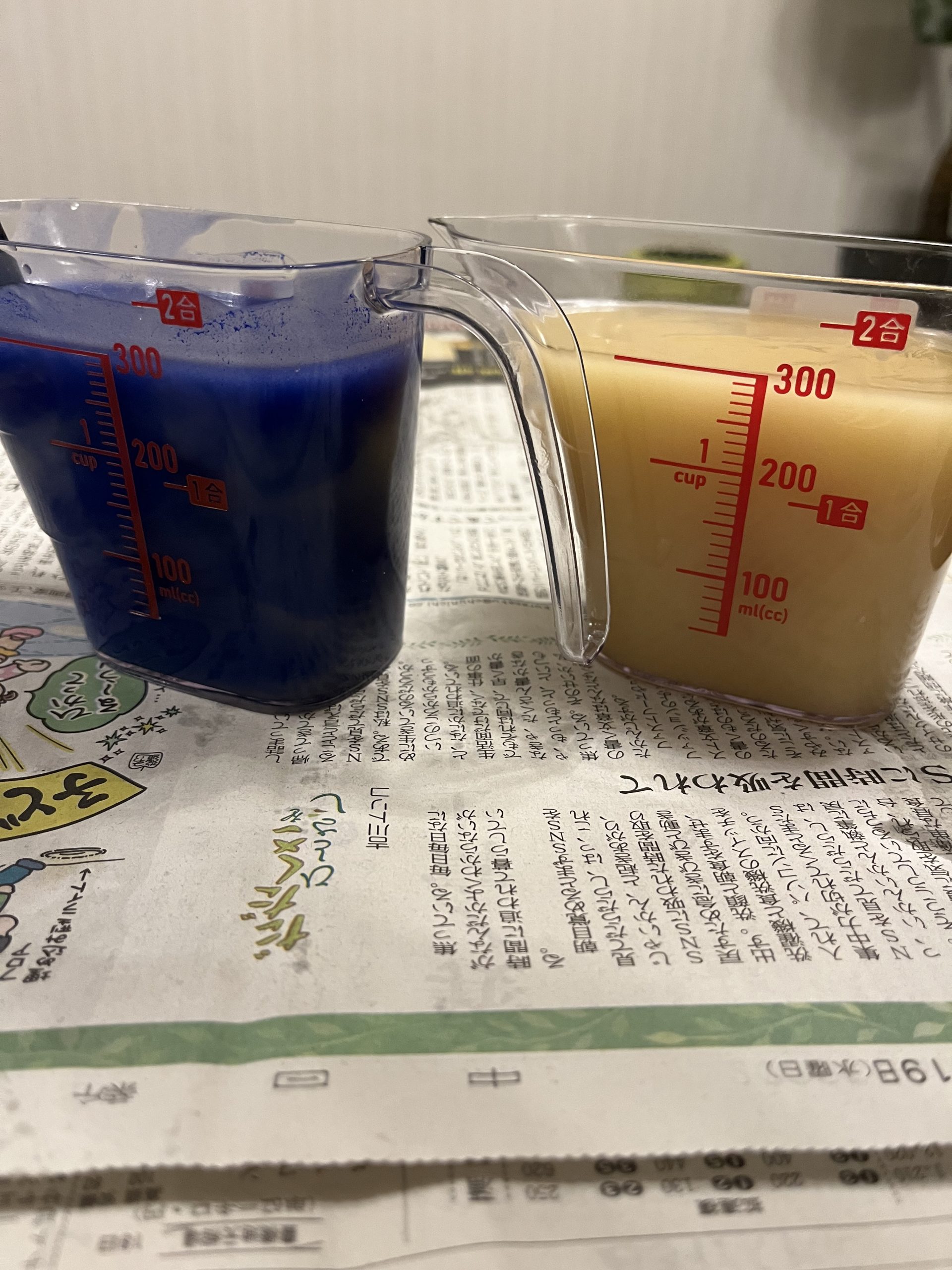 あれれ⁉️交互に入れたまではよかったのに。。。その後もうひと工程 余分な事をした為にケースに入れたら ほとんど柄がつかないぐらい混ざってしまい😱😱