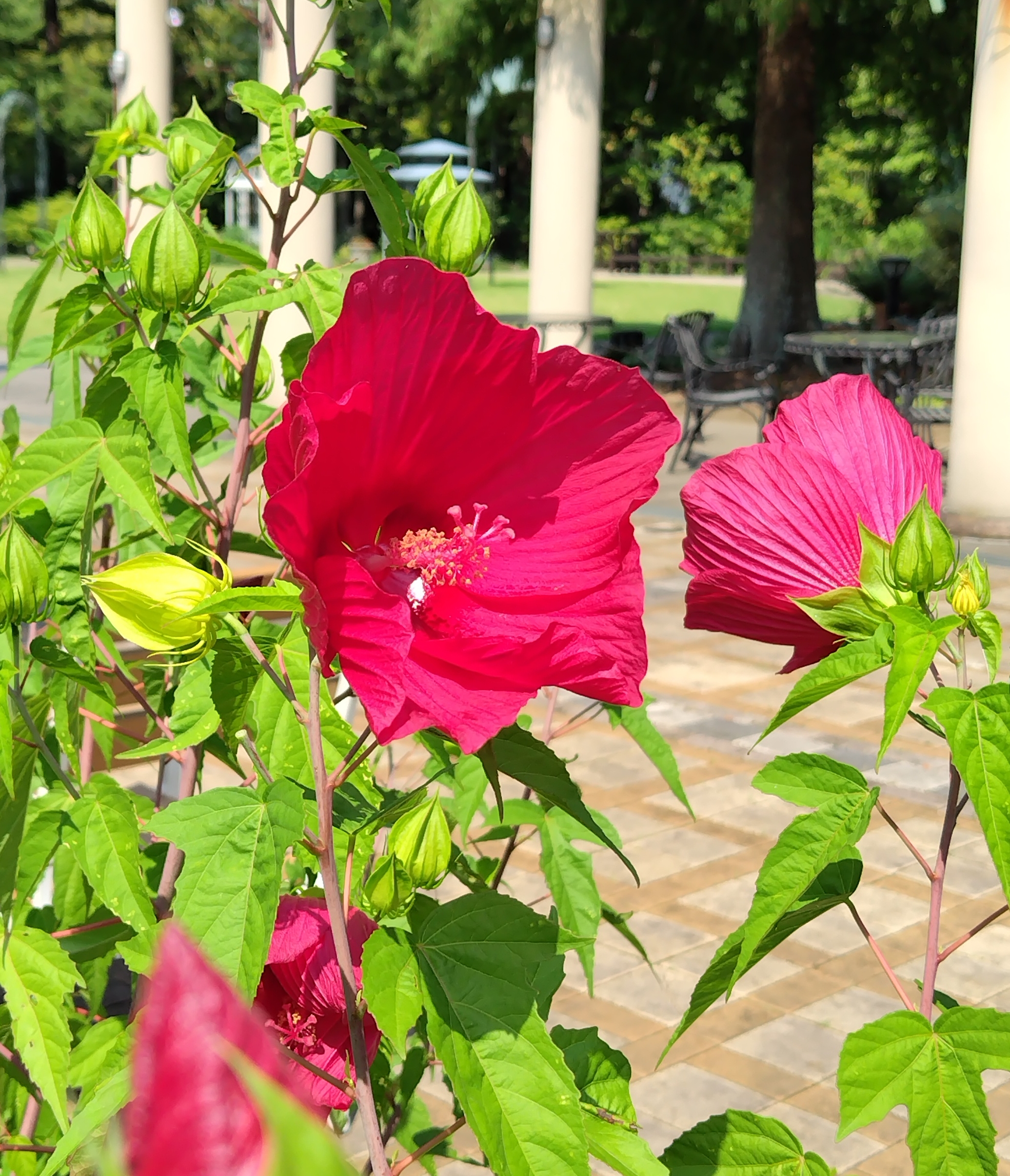 今見頃なお花の中に、「タイタンビカス」と「ハイビスカスローゼル」というのがあり見に行ってみました。