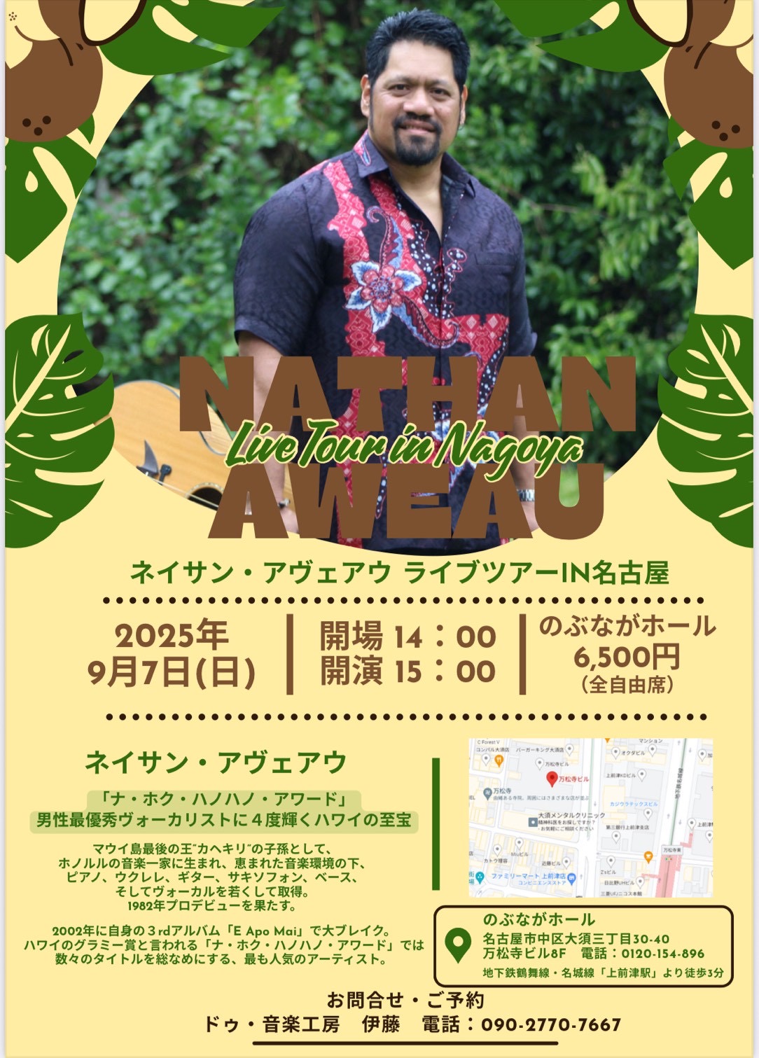 9/7には 大須で Nathan Aweauのコンサート、至近距離で美しい歌声を聞いて 癒され・・・