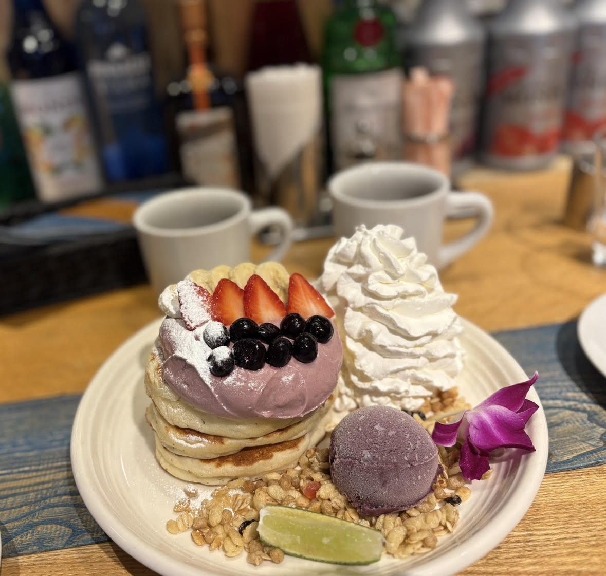 生クリームたっぷりのパンケーキ、、